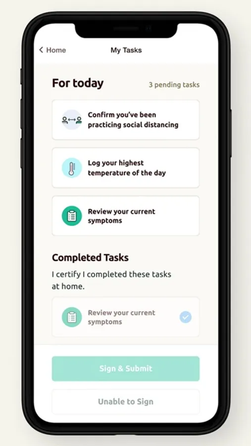 Information on local testing location options are made available based on your zip code, and once tested you’ll get daily task reminders to help monitor your progress towards recovery.