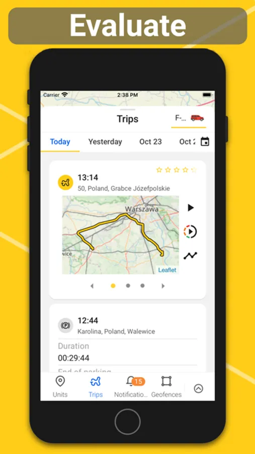 - evaluate how eco-friendly is your driving style and receive points for each of your trips;