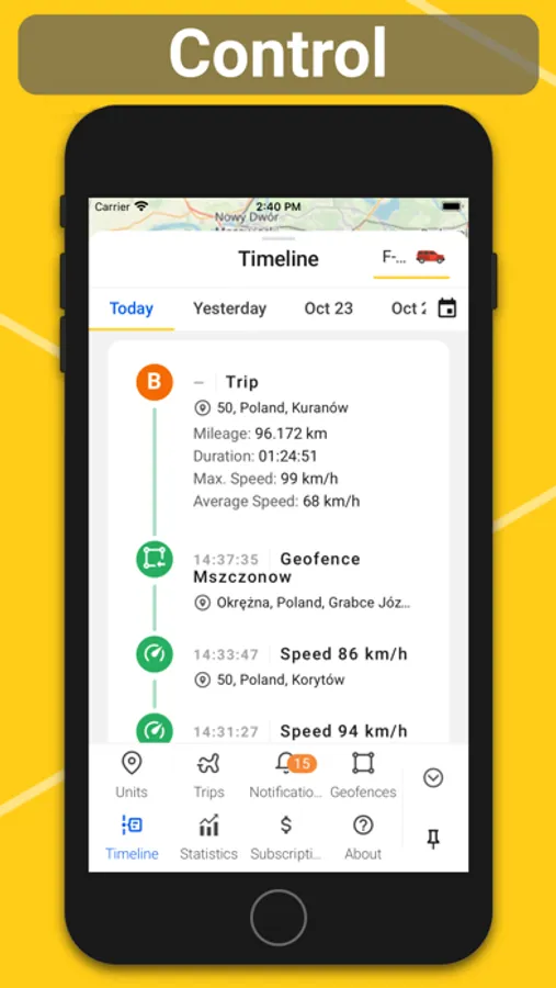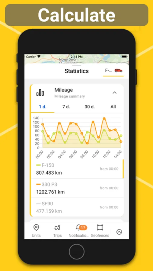 - analyze various parameters: mileage, duration, maximum and average speed values, as well as build graphs on the use of your vehicle.