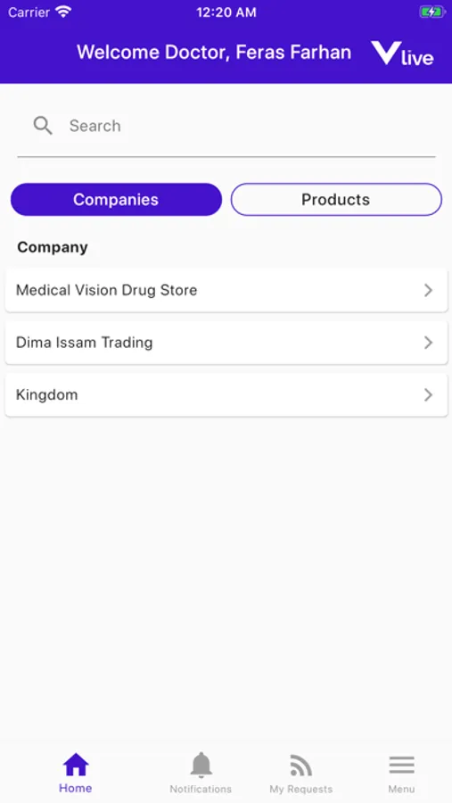 Vlive is a Virtual application that offers a direct connection between doctor and pharmaceuticals companies.