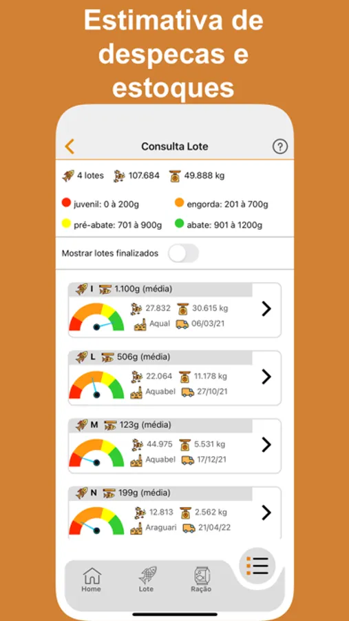 Você ter acesso gratuito a todas as funcionalidades do aplicativo, porém com número limitado de lotes e tipos de rações.