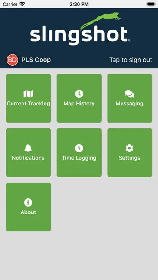 Slingshot Tracking mobile application with access to current tracking, vehicle history, weather, messaging, system notifications, and more.