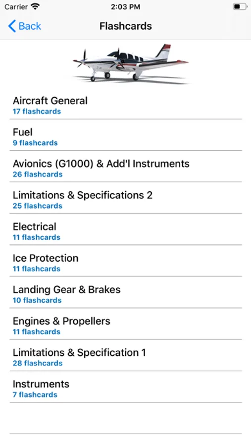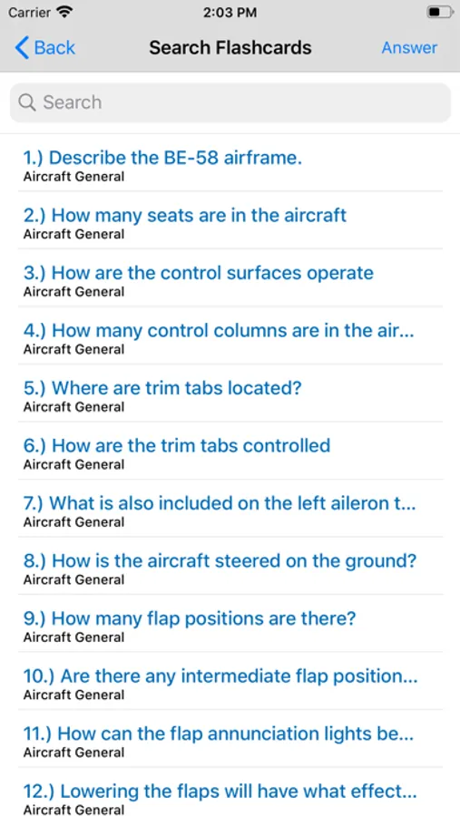•Choose any aircraft system from a drop down menu and easily study technical questions about the airplane.