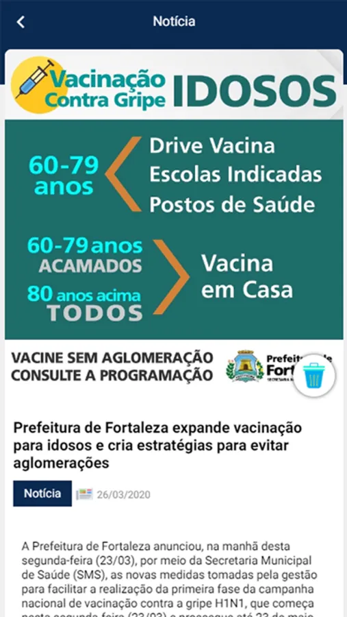 Permite aos cidadãos realizar a confirmação do seu agendamento e avaliação do atendimento prestado na unidade de saúde ajudando a secretaria municipal a aprimorar sua equipe para melhor atender a população, recebimento de notícias, avisos sobre a saúde do cidadão.