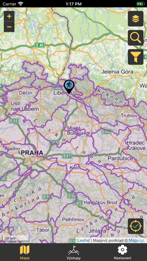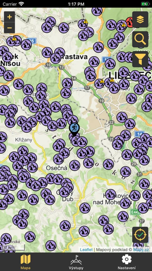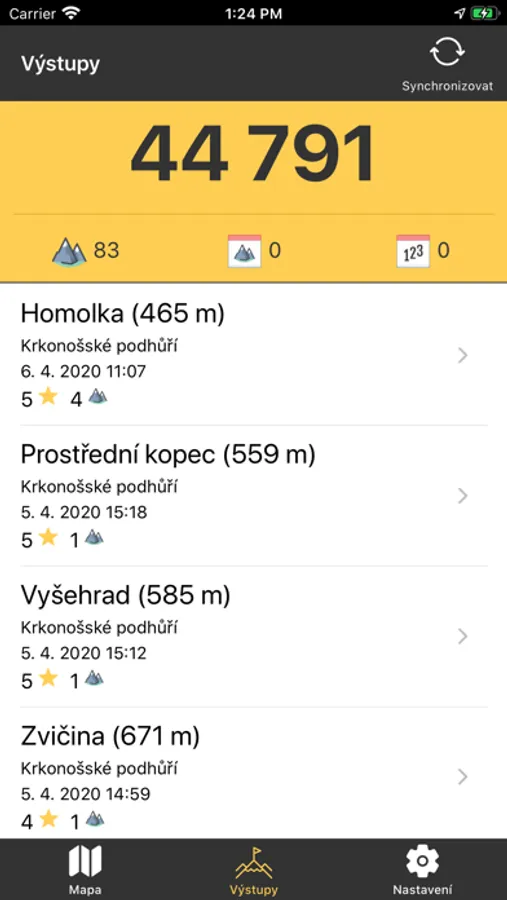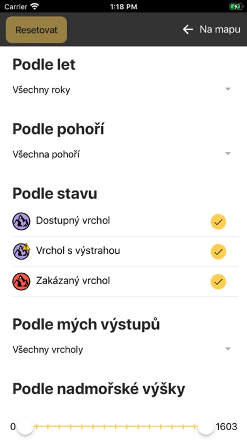 V aplikaci můžeš vrcholy prohlížet, vyhledávat, filtrovat a samozřejmě navštěvovat a také hodnotit, jak se ti jednotlivé výstupy líbily a jak pro tebe byly těžké.