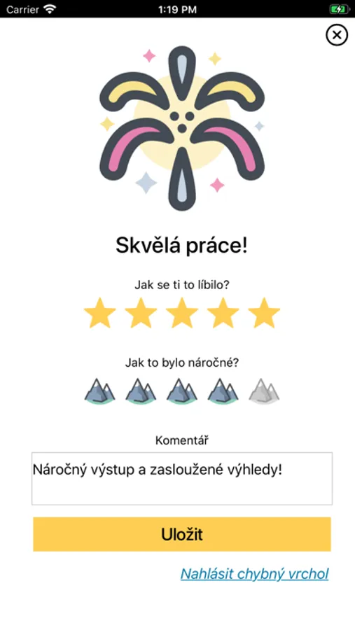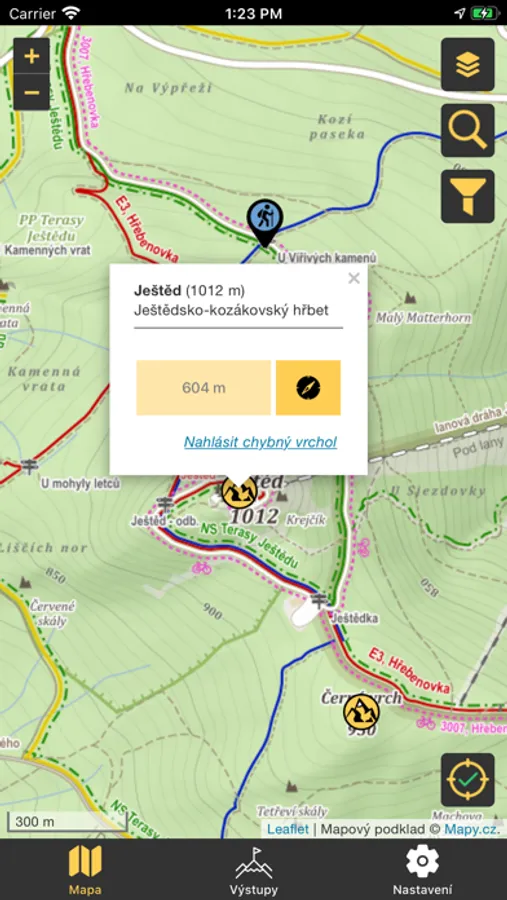 Profily vrcholů: O každém vrcholu zjistíš zajímavé turistické informace. Jak je kopeček oblíbený a náročný a také komentáře a fotky ostatních návštěvníků, co na vrcholu byli před tebou.