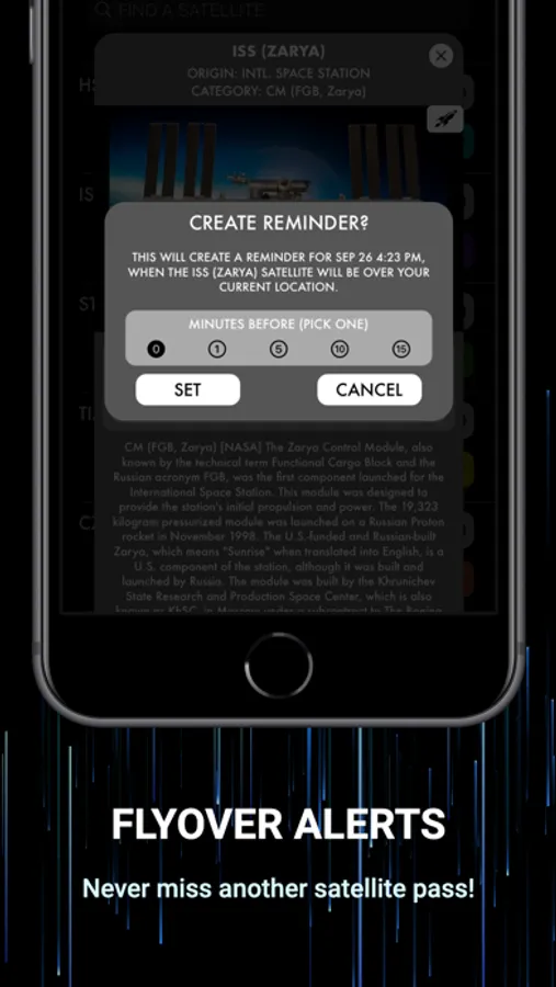 4. Find out when a satellite will be overhead, and set reminders in seconds