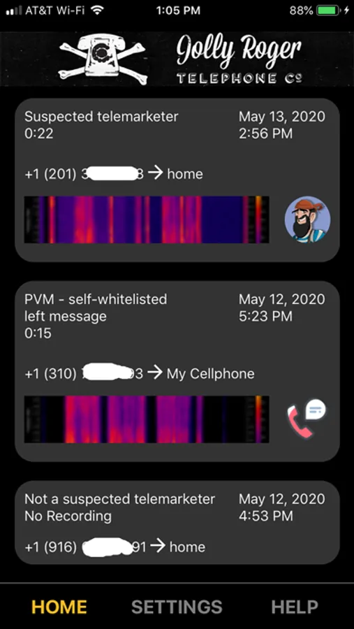 For users of the Jolly Roger Telephone Company's phone protection services, now you can have your Call Log as an app on your phone. So instead of having to log into our website whenever you want to check your voicemail, you can now just startup this app and review and listen to your calls.