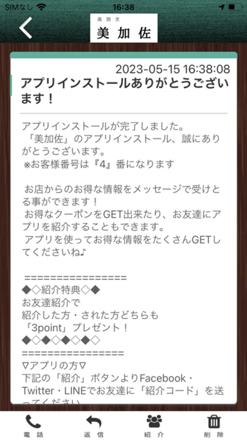 美加佐のアプリをSNSを通じてお友達に紹介する事ができます。