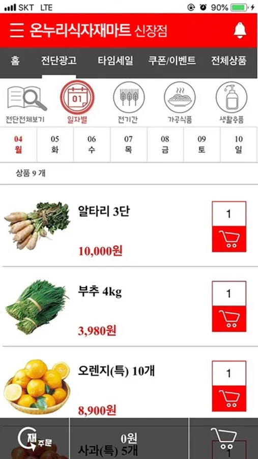 온누리식자재마트 신장점에서 진행중인 행사상품을 기간별,종류별로 구분하여 알려드립니다.