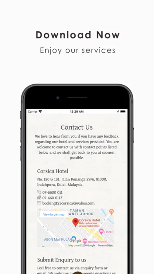 Corsica Hotel is your choice of hotel located in Indahpura, Kulai, Johor connects you to city premier landmarks, shopping malls, food districts and Senai airport. The hotel's facade portrays contemporary chic design offering luxurious accomodation at affordable price with comfy spacious room, unlimited high speed WIFI, wide breakfast selections, 24 hours CCTV security surveillance and ample parking space. Corsica Hotel aims to provide holistic service experience to all valued guest, definitely to cater your business and leisure needs.