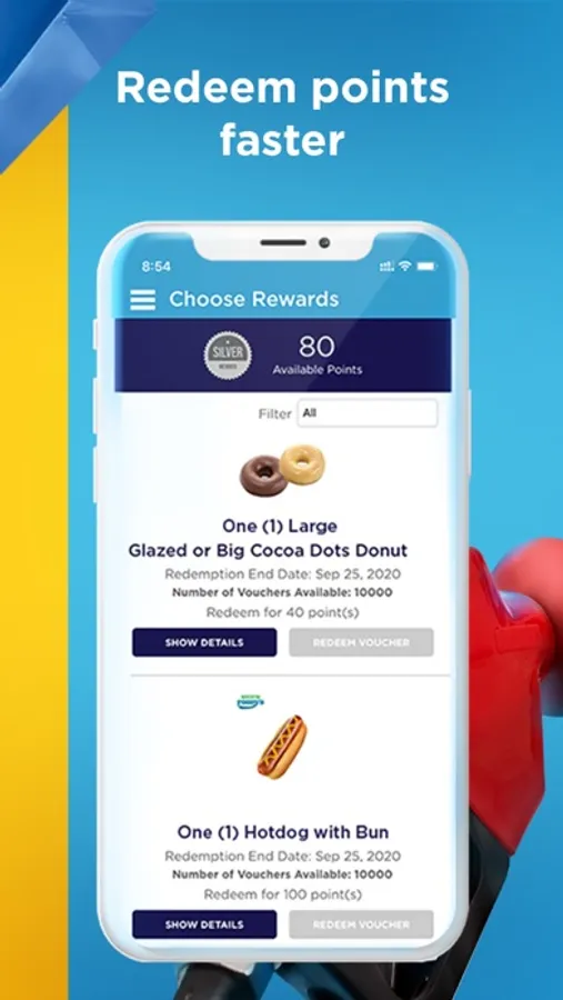 • Exchange points for discounts, vouchers and more!