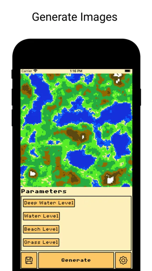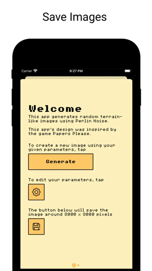 This app will generate random images using Perlin Noise based on parameters you provide. You can save the images.