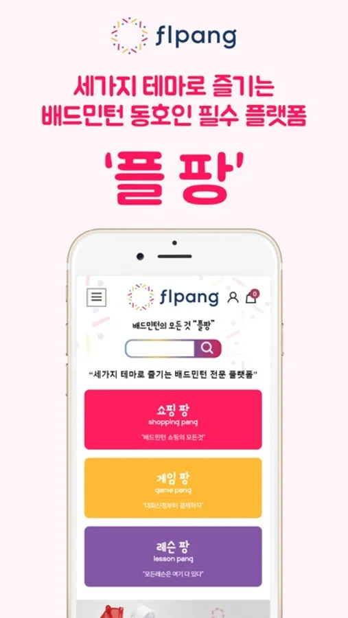 플팡 (FLPANG)은 배드민턴 동호인을 위한 전문 플랫폼으로, "쇼핑,대회,레슨" 세가지 테마로 서비스되는 스포츠 전문 플랫폼 입니다.