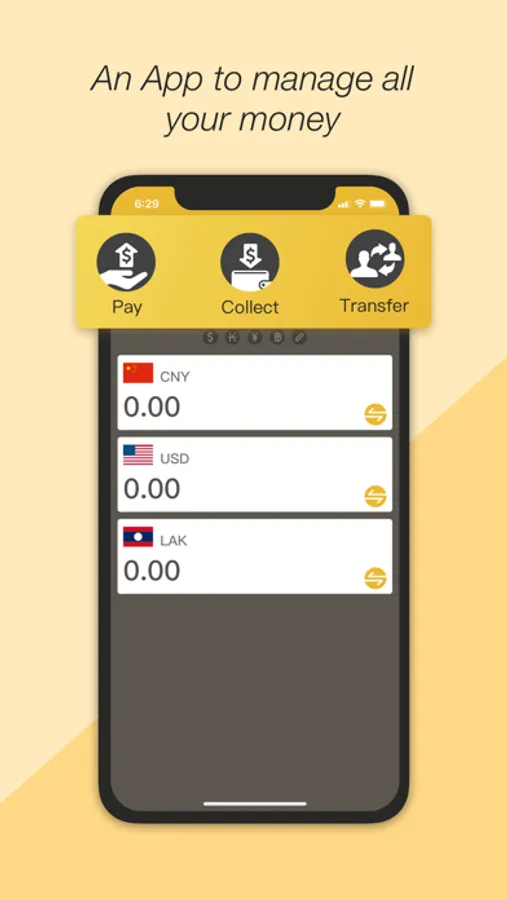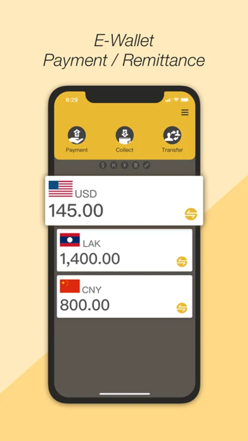 including USD, LAK, RMB, THB.