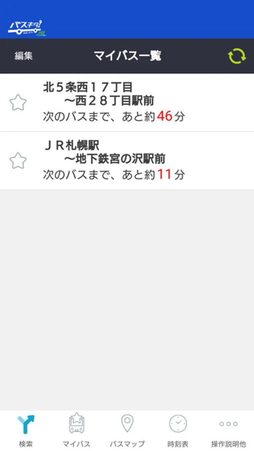 (3) マイバス機能:通勤通学で使用するバスを登録することで、ワンタップ表示されます。