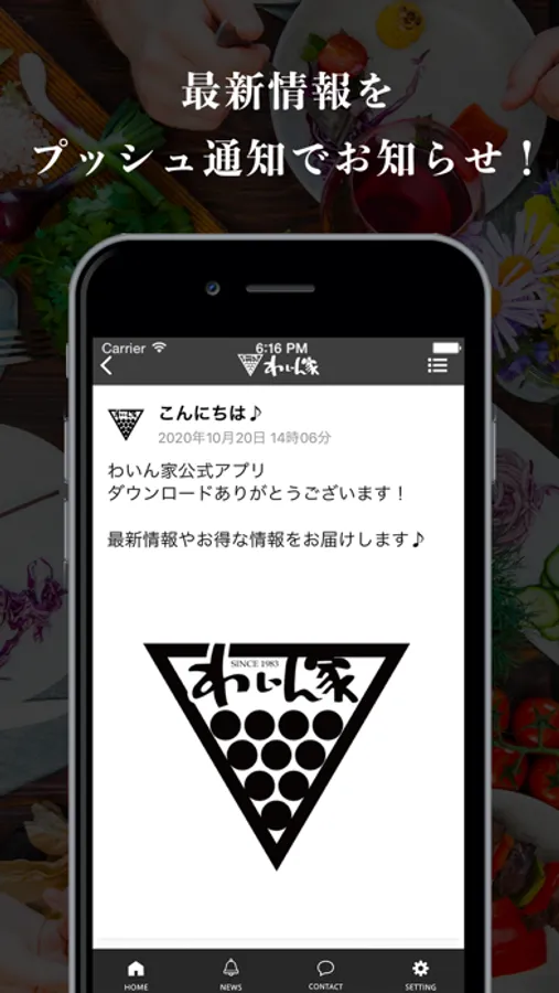 お得な情報をプッシュ通知でお知らせします。アプリの初回起動時にプッシュ通知を「ON」に設定するようにお願いします。なお、ON・OFFの設定は後からでも変更できます。