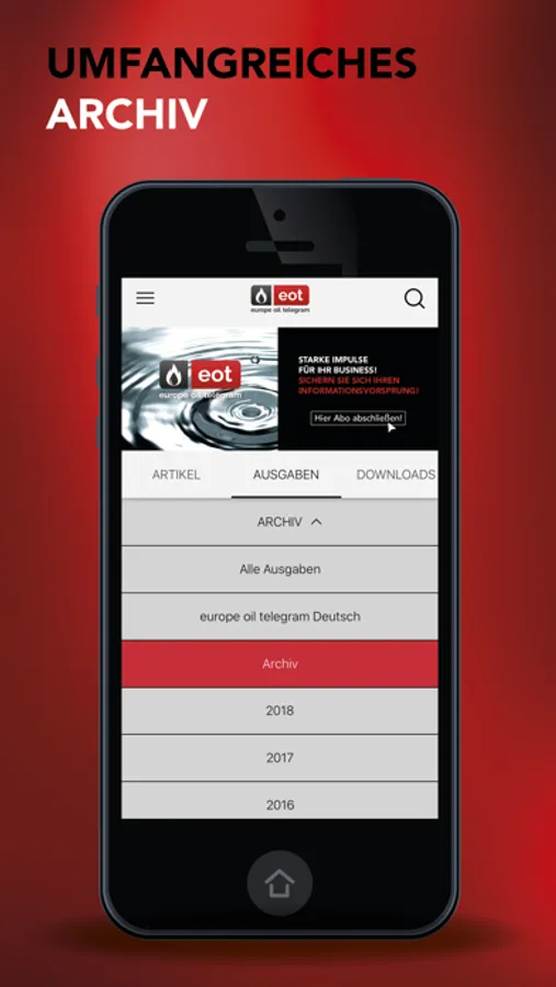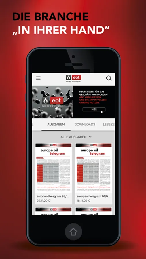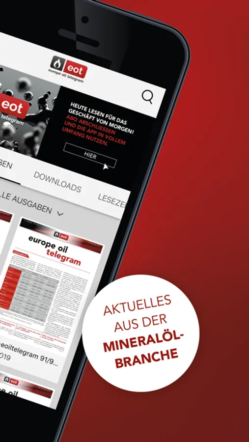 Mit dieser App auf den neuesten Stand – als kostenlose Vorschauversion oder ergänzend zur Ihrem europe oil telegram (digitale Leselizenzen). Überzeugen Sie sich von Ihrem Informationsvorsprung, alle eot Ausgaben jederzeit und an jedem Ort griffbereit zu haben, ob am iPhone oder am iPad. Profitieren Sie als mittelständisches Mineralölunternehmen bei Ihren Unternehmensentscheidungen von verbands- und konzernunabhängigen Informationen aus erster Hand: