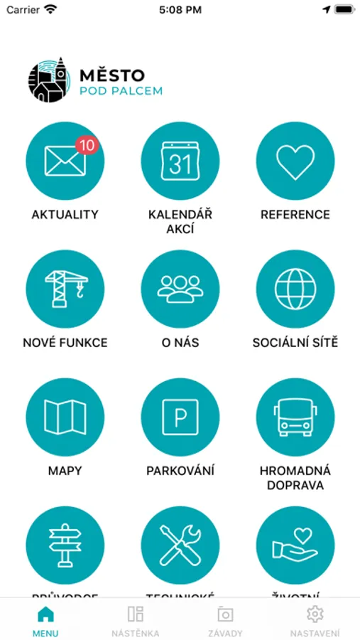 Aplikace mobilního informačního systému Město pod palcem, produkt společnosti ETERNAL, s.r.o.