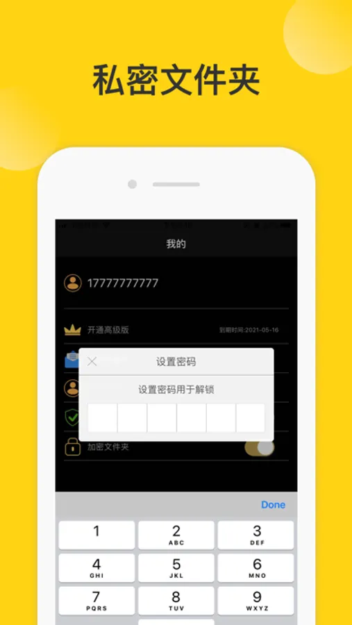 【密码保护】支持开启指纹或人脸开屏解锁,支持Touch ID