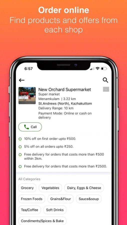 You will be able to see the shops available in your location. You will be able to see products available in each shop. You can order for home delivery or takeaway.