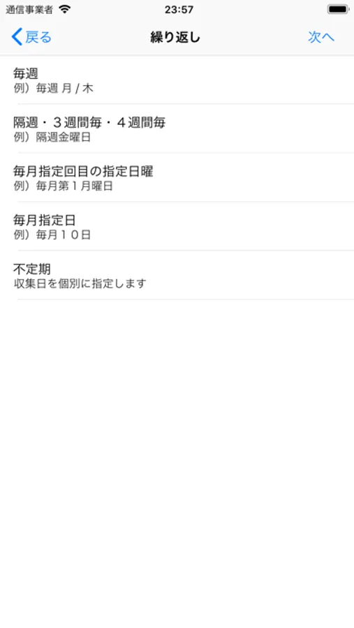 ゴミ収集日の設定は、以下のような通知パターンに対応できます。