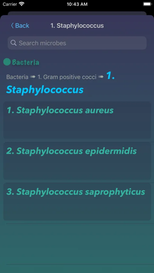 The App provides search function with the microbe’s name or a part of it.