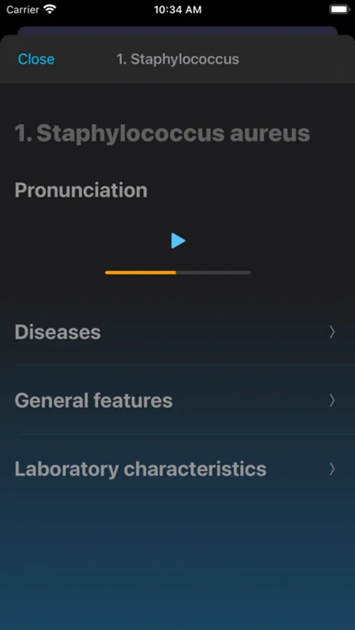 The App provides pronunciation of all the above mentioned microbes
