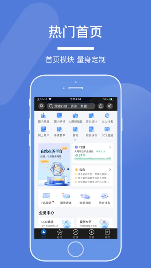 大商所下属全资子公司-飞创公司研发的DCE财讯通是一款基于期货市场行情数据的APP,可以实时盯盘市场行情,动态掌握市场数据,并提供了模拟交易功能,帮助客户能够熟悉掌握交易技巧。