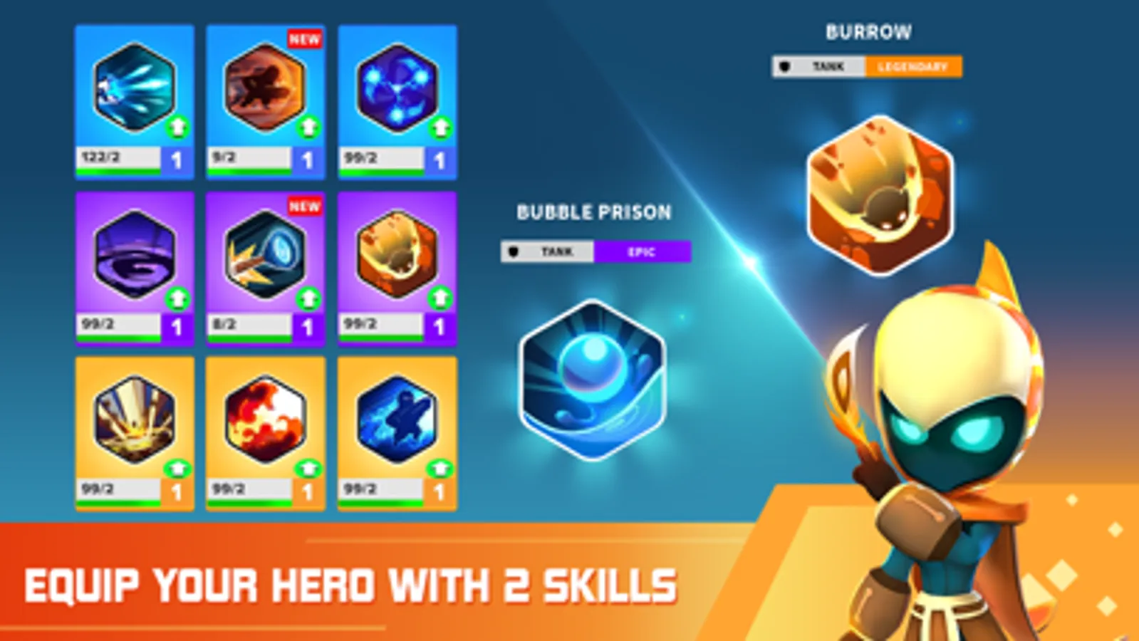 - Equip your hero with 2 skills of choice beside main hero ability – a great blend of strategy and action