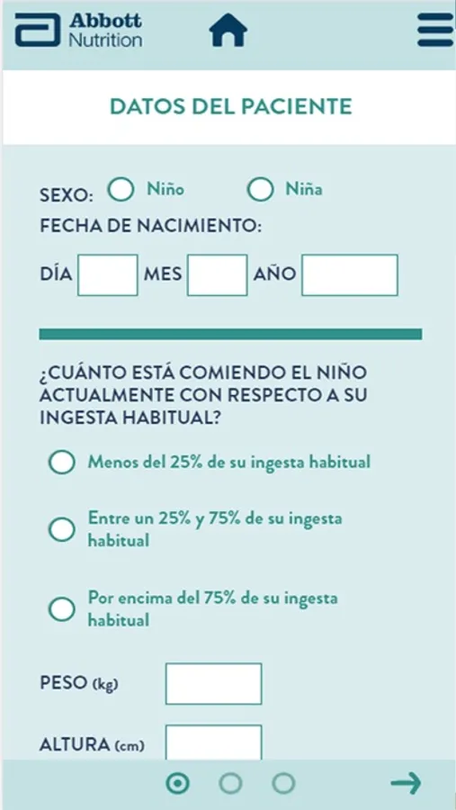 *STAMP (Screening Tool for the Assessment of Malnutrition in Paediatrics) es una herramienta de cribado nutricional validada para el uso en niños hospitalizados entre los 2-16 años.