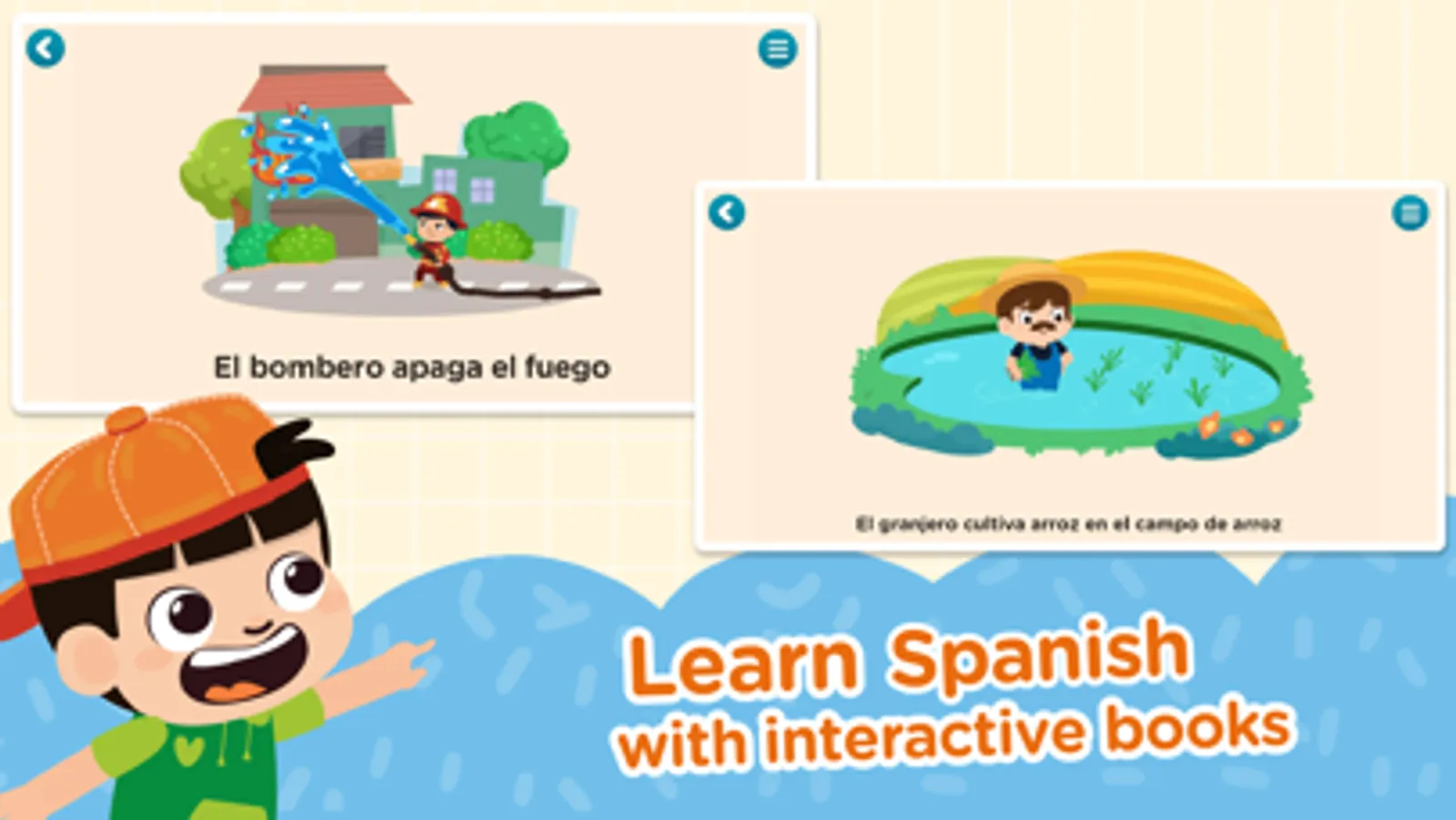 Welcome to Vkids Español - Spanish For Kids - Español Para Niños - the leading digital Spanish academy for kids aged 2-10, where your little beans can explore their passion and learn with instant, unlimited access to 1000+ high-quality interactive stories, 500+ interesting vocabulary learning games and 9000+ vocabulary flashcards with +800 topics.