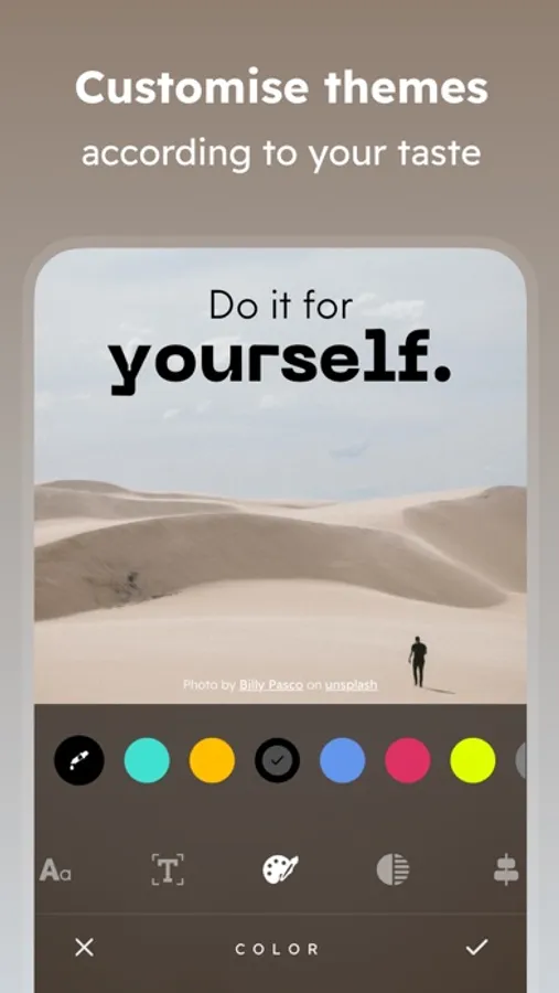 Experience the power of positive reminders effortlessly with our brand new widget feature, available since iOS 14. Simply install the widget on your home screen and customize it to your heart's content using our user-friendly app. You can have widgets as you want, allowing you to start each day with a positive mindset and access those encouraging words when you need them the most.