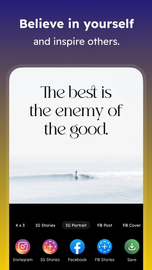 With our fully customizable app, access daily inspirational quotes, share them with your friend and family and set up convenient quote widgets on your mobile screen. Spread positivity and improve lives with just a tap. Save quote images to meet Social Media Image Sizes regulations.
