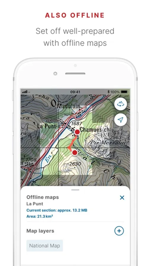 Use the famous national maps to discover even the most remote places in Switzerland and topics such as hiking, cycling, snow sports and aviation. All functions and data of the app as well as offline use are free of charge. The app is free of advertising and does not require a login.