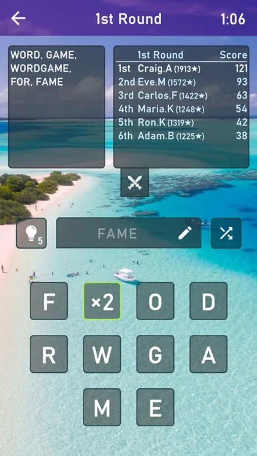 Word-Battle is an exciting and addictive, real-time, multiplayer English anagram word puzzle. You can play against up to 6 friends available online at the same time.