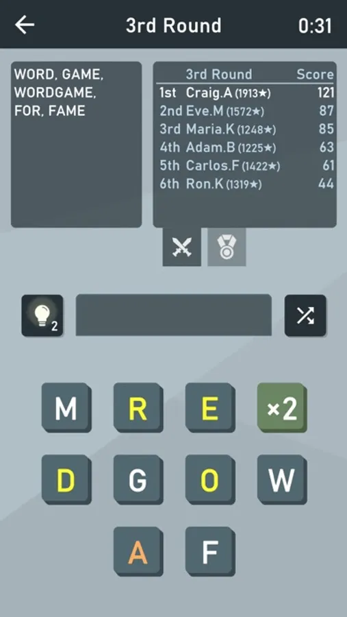 WordBattle is a great anagram multiplayer word game to practice English spelling skills, practice foreign languages, and extend your vocabulary. If you are a word game lover and you love each wordgame, text game and anagram puzzle, then you know finding words is much fun.