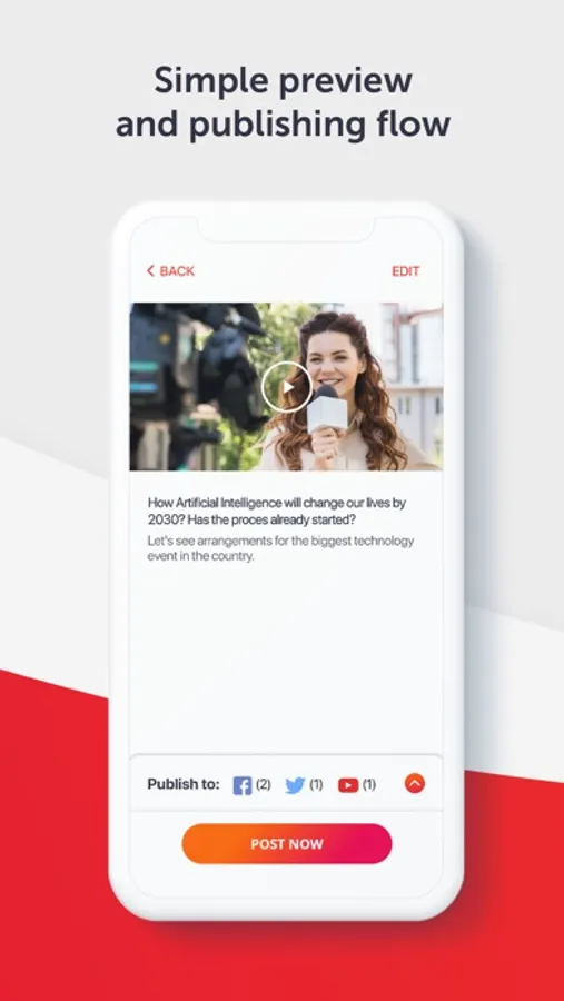 • Publish videos directly from an iOS device to Facebook, YouTube and Twitter simultaneously.