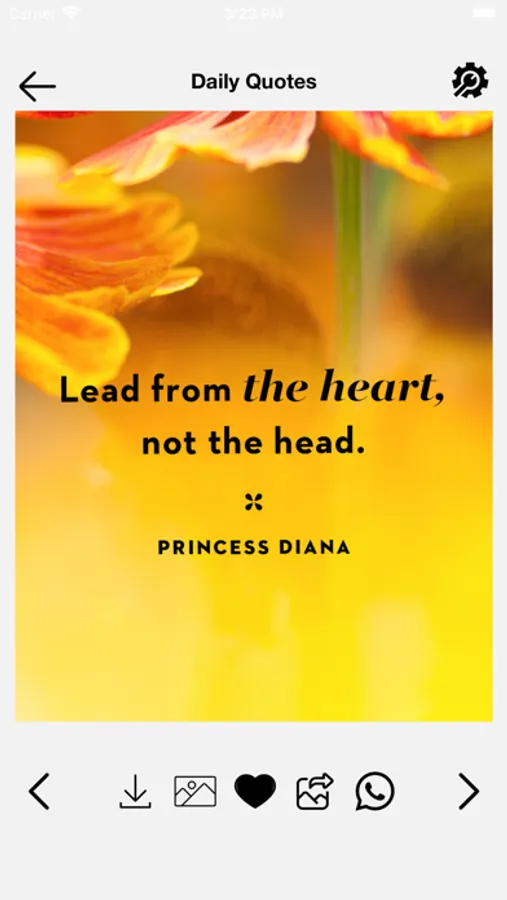 - Add a quote to your favorite by clicking on the Heart icon. You can then select the favorite quotes from the menu for later viewing.