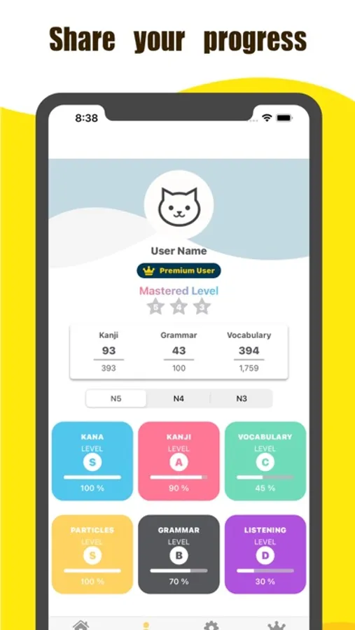 Your efforts are recorded on your profile page to motivate you to learn ever more Japanese.