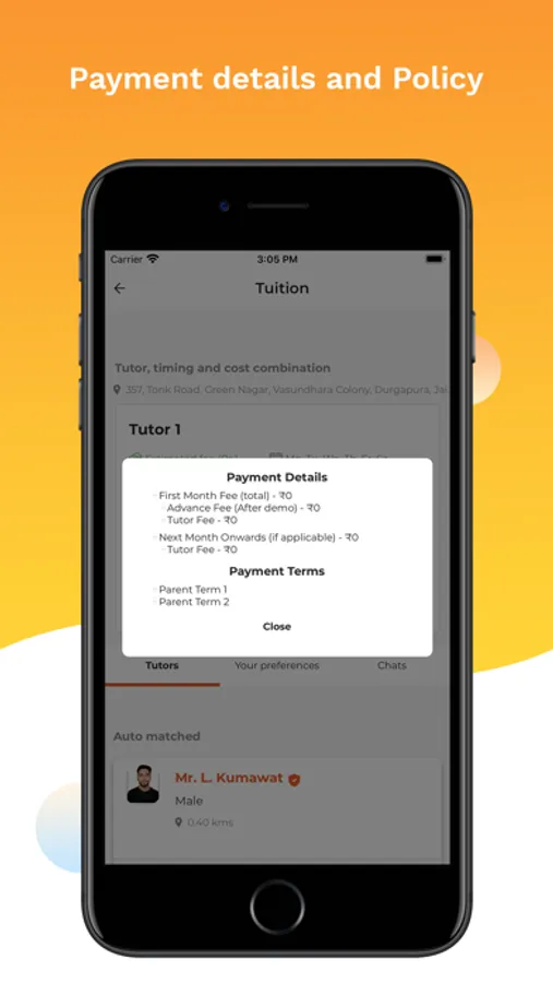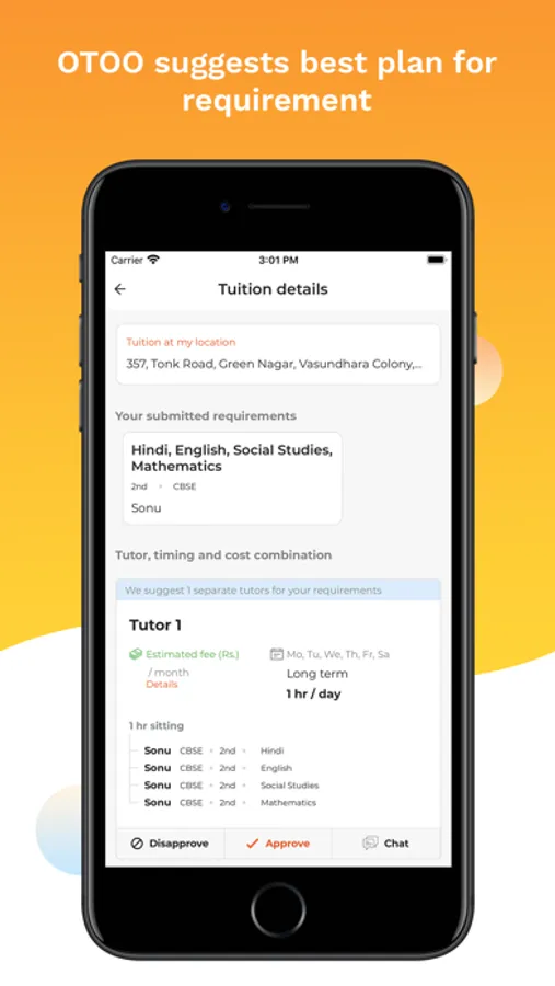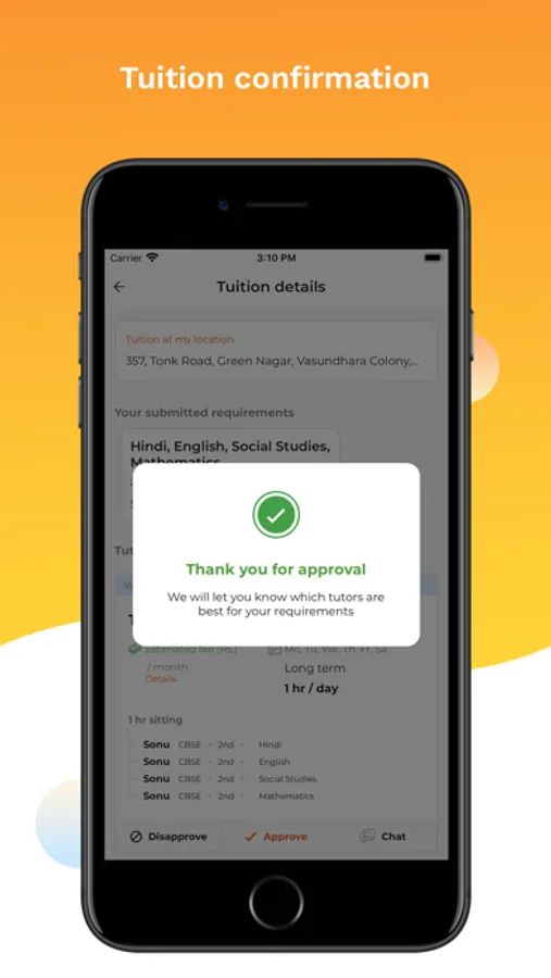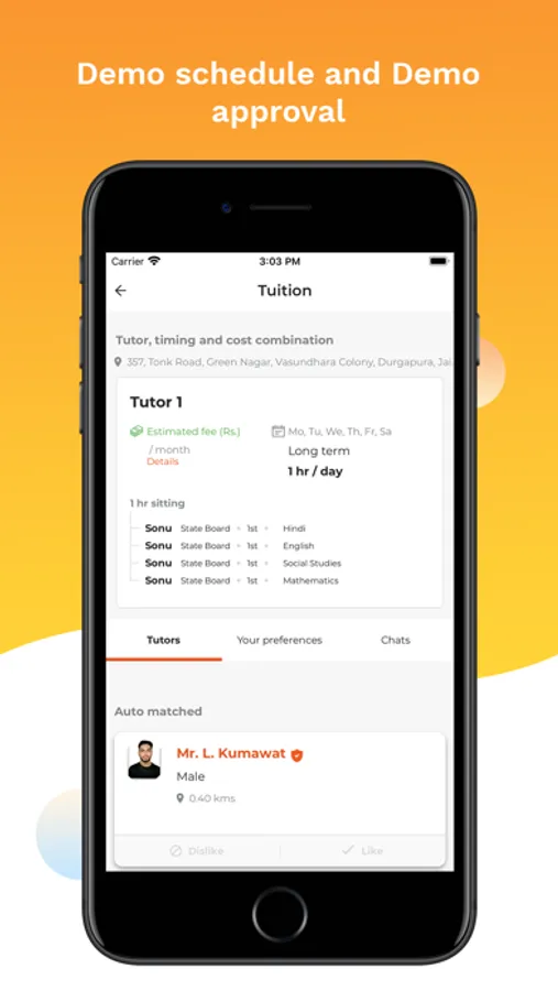 5.After approval, our app will suggest tutors based on your requirements. Select the one that matches best with your choice.