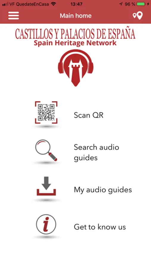 You can search and download your audioguides using a simple search engine or on the map of Spain, with the visual geolocation of the monuments included in the App.