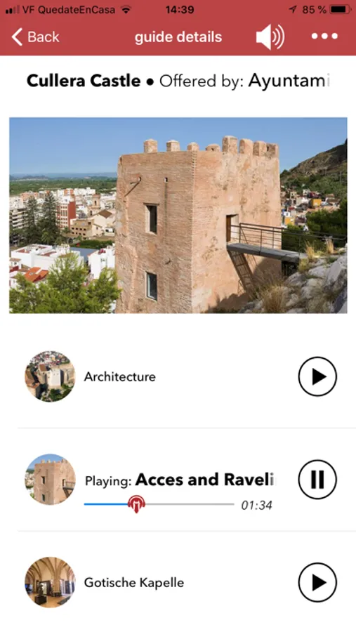 You will be able to listen to the audios by downloading them at home, in advance of your visit, without spending any mobile data. You can also ensure health protection by using your own headset, your mobile device's speakers or your device directly as if it were a phone call. Take the audio guide with you wherever you go and listen to it as often as you like.