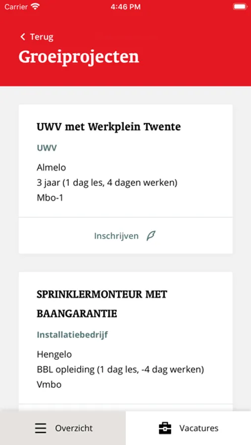 Wil jij zelf initiatief nemen op jouw verdere loopbaan? Dan kun je in de Werkplein Twente app recente vacatures vinden. Verder staan er in deze app evenementen waarvoor jij je kunt aanmelden, sollicitatietips, en scholingsmogelijkheden met baangarantie.