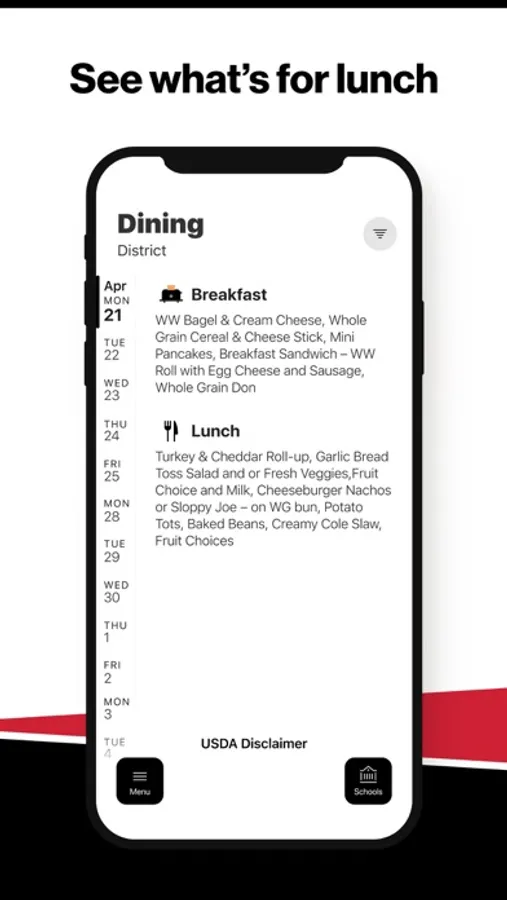 Within the dining section, you’ll find an easy to navigate, weekly menu, sorted by day and meal type.