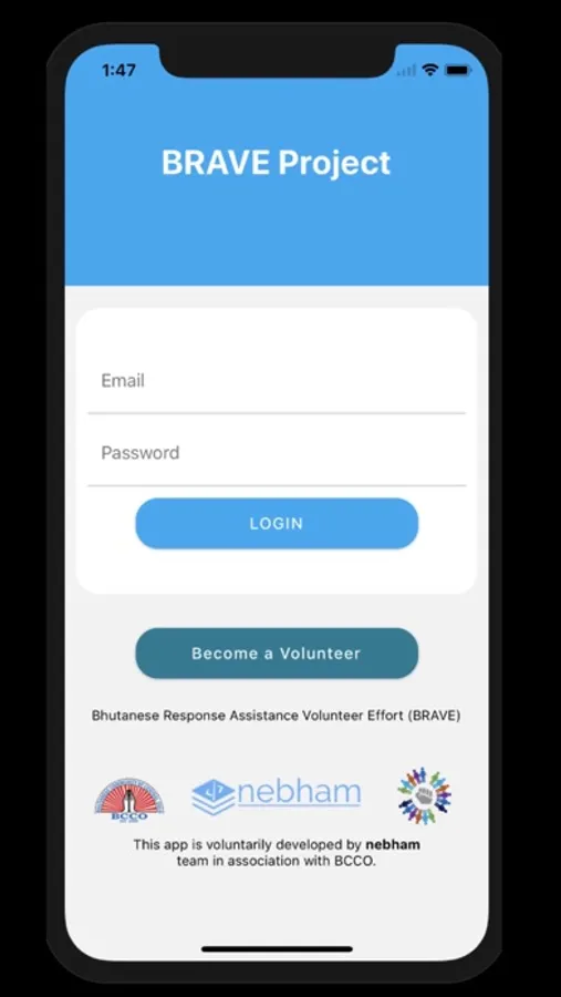 BRAVE Project is the official application developed by nebham team to support the BRAVE Project. The BRAVE Project was initiated by the Bhutanese Community of Central Ohio (BCCO) in Columbus. The goal of this project is to mobilize community members for an appropriate response to a crisis.