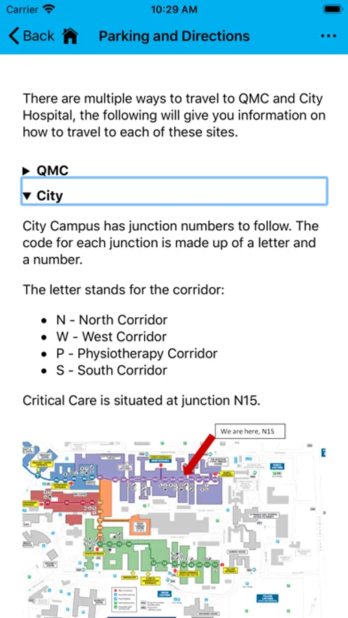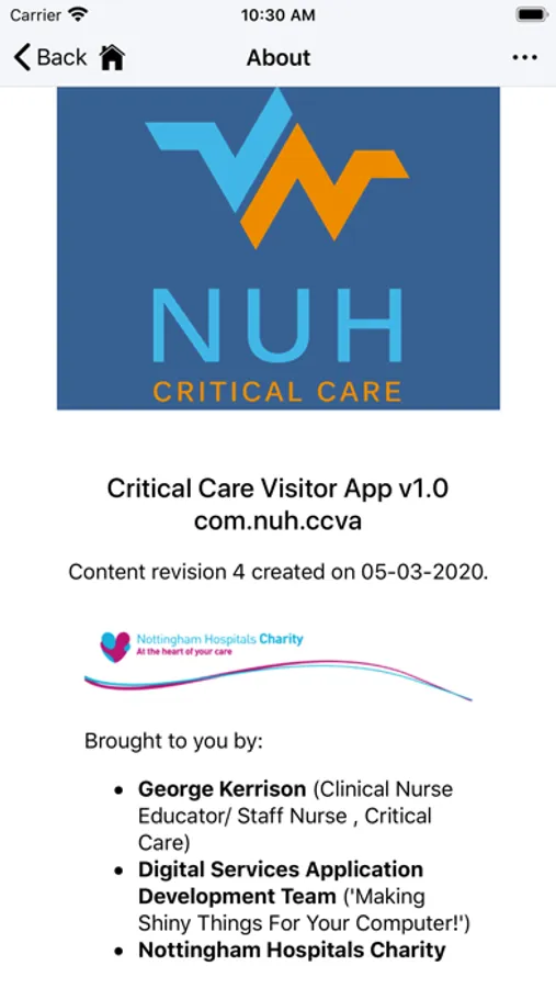 An application designed to provide help and guidance information for visitors to Critical Care at the Nottingham University Hospitals NHS Trust (NUH) Queens Medical Centre and City Hospital campuses.