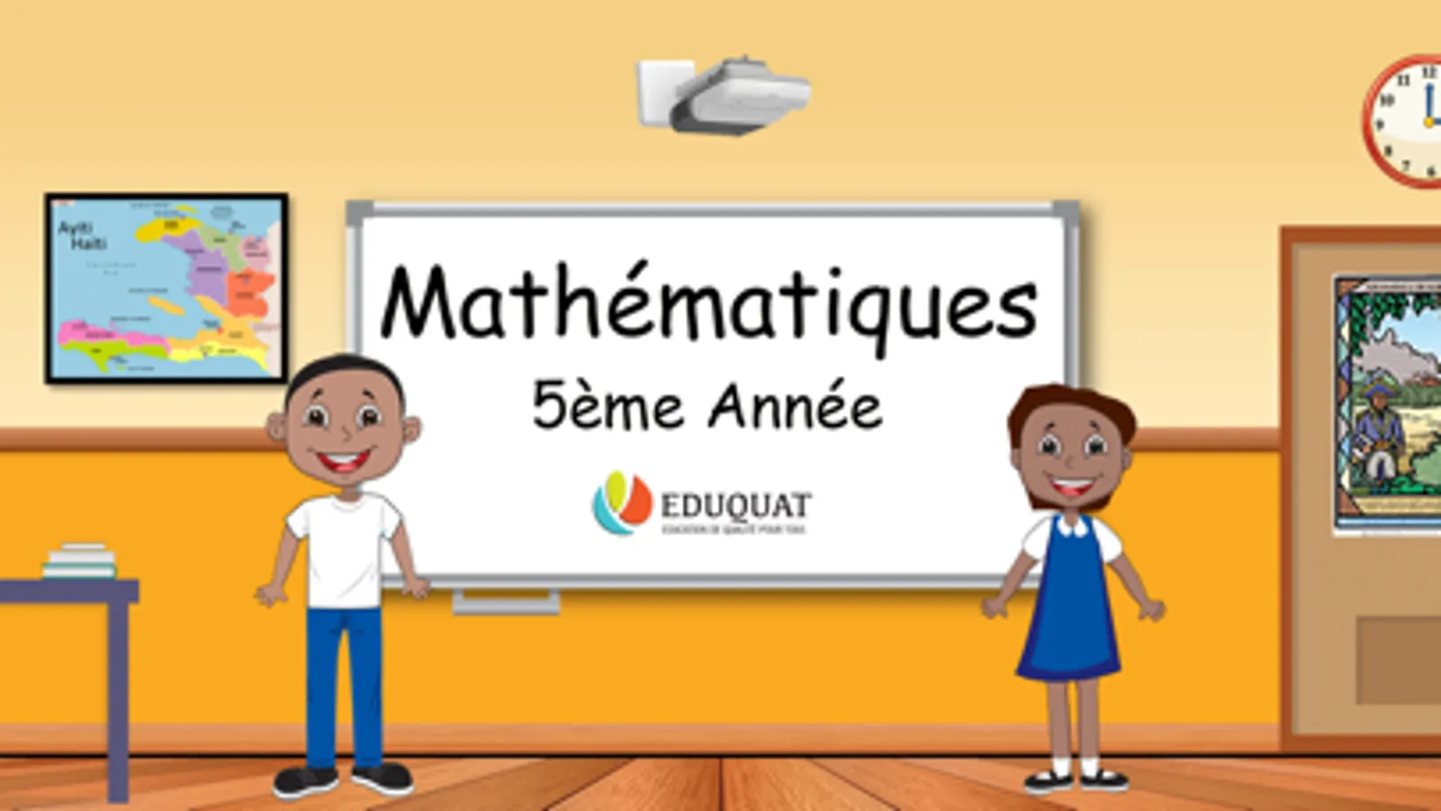 Fifth Grade Mathematics app in French, Haitian Creole and English. This app is the fifth in as series of six. The content is based on the Haitian primary grade curriculum. The app was designed by the EDUQUAT program in Haiti.