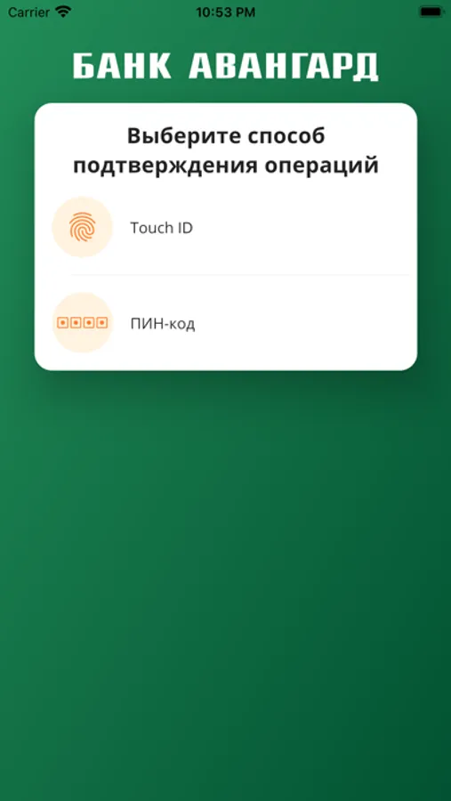 1. Из предложенных способов выберите подтверждение через «Avangard Pay»