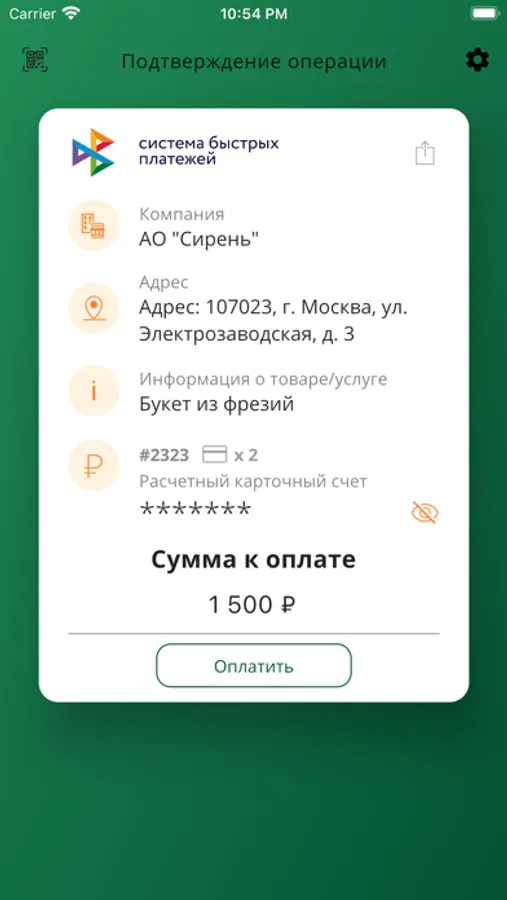 - Подтверждение оплаты покупок по корпоративным и личным картам в интернете